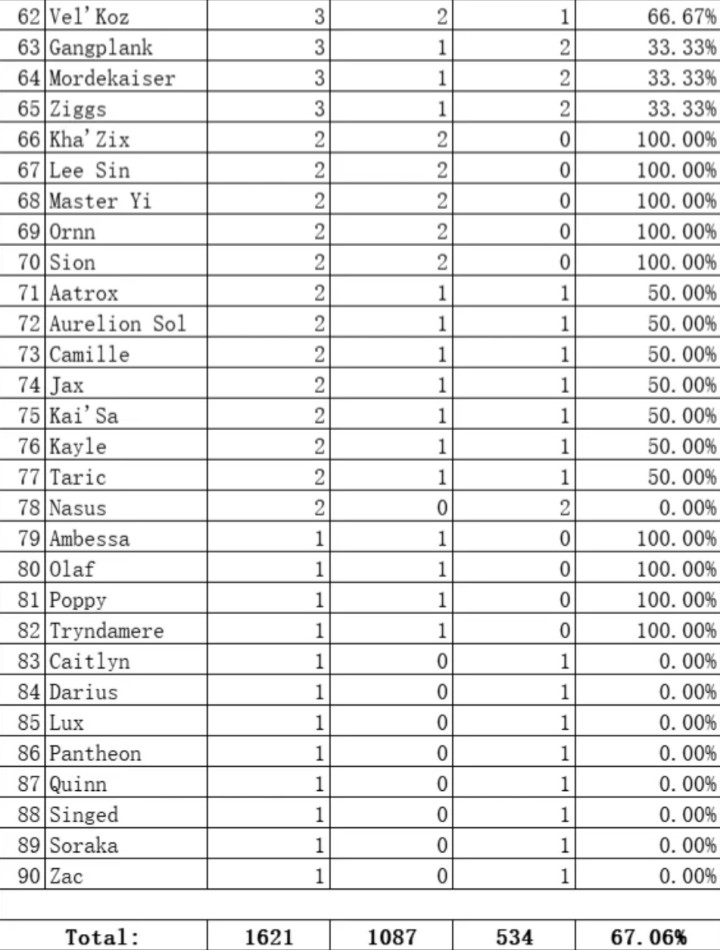 这里不错对比Faker生计通盘骁雄的平均胜率(67.06%),沙皇要进步接近4个百分点。