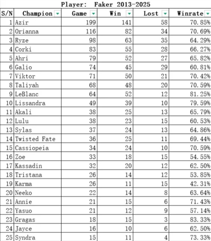Faker生计数据,沙皇是第一牌号