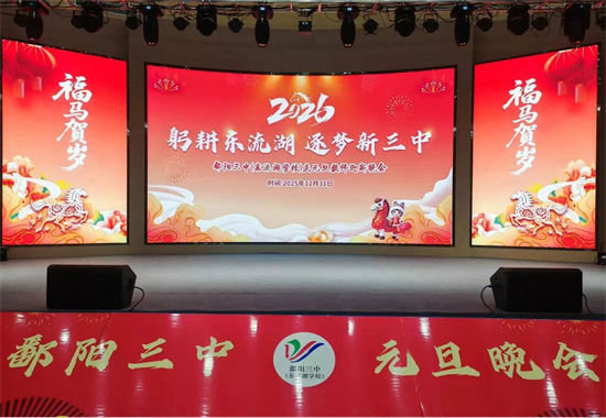 2025年12月31日晚,鄱阳三中(东流湖学校)以“躬耕东流湖,逐梦新三中”为主题的2026年元旦训练迎新晚会关怀启幕。整场晚会兼具“福马贺岁”的喜庆氛围与“高视睨步”的奋进力量,全方向展现了学校训练军队的多元风仪与校园文化凝华力,为在场师生、家长及社会各界嘉宾呈现了一场充满教诲温度的视听盛宴。