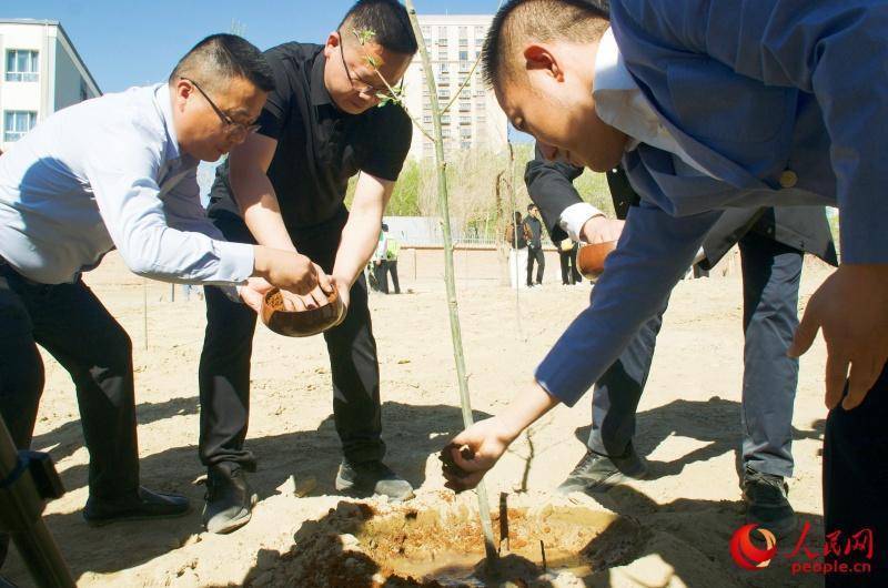 湘阴县代表和哈密代表共同将两份泥土培入“齐心柳”。东谈主民网 娜地拉摄