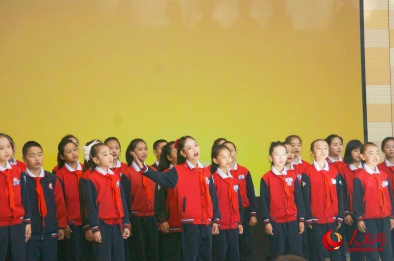学生齐唱《左公柳》。东谈主民网 娜地拉摄