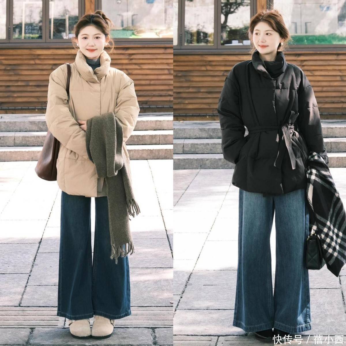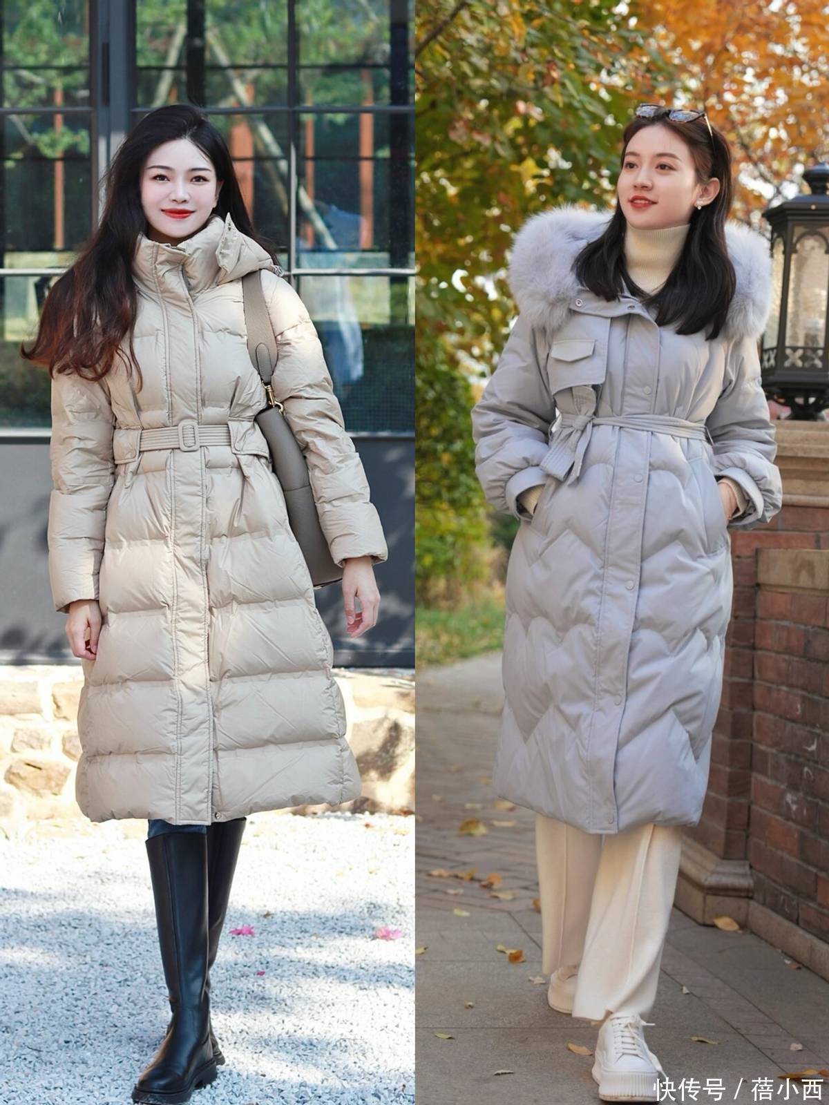 左边卡其款配长靴,利落通勤;右边浅灰款搭阔腿裤 + 小白鞋,安闲又柔和,齐是高等穿搭的正常模板。小个子女生这样穿羽绒服,御寒又文静,大肆拿捏显高穿搭精髓!